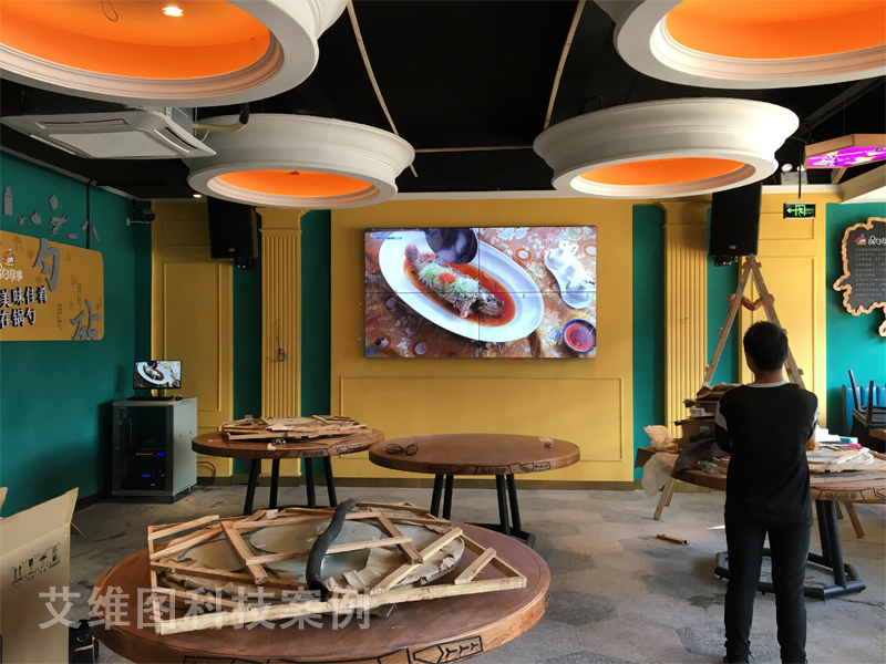 根據(jù)東莞萬江“鍋勺故事”餐廳的實際情況, 艾維圖科技技術工程師給出了55寸2x2掛墻式拼接屏顯示方案,艾維圖的高清液晶拼接屏穩(wěn)定、性能可靠,滿足各方面要求,這款拼接屏擁有的IPS面板,可以讓色彩更飽和、畫質更細膩。而IPS技術所帶來的廣視角讓視線更開闊,多角度觀看無偏差,帶來驚艷的多方位的視覺體驗,無論是背景顯示還是餐廳的公共空間都能有清晰如一的視覺享受。