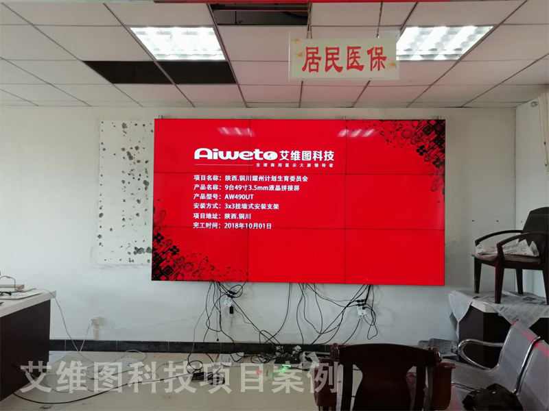 陜西銅川耀州計劃生育委員會安裝的艾維圖55寸3.5mm超窄邊液晶拼接屏案例,我們的工程師根據現場的環境布局,設計了一套3*3液晶拼接屏方案,擁有超高亮度和色彩一致性效果較好,本身就可被看作是充滿時尚科技元素的建筑裝飾,成為銅川耀州計劃生育委員會提升檔次的宣傳工具。這次拍的液晶拼接墻圖片非常的給力,讓群眾通過液晶拼接大屏能快速的了解計劃生育信息,及具體規劃。