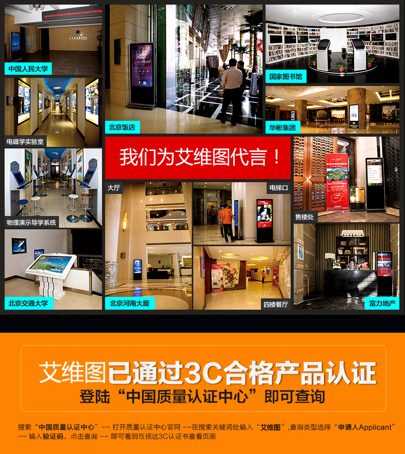 (AW-CM490L01)立式觸摸一體機是深圳市艾維圖科技有限公司自主研發的大尺寸系列觸控產品的一種機型。(AW-CM490L01)能夠輕松實現各種信息查詢功能,如地理位置查詢、用戶信息查詢、相關法規和操作流程查詢等等,已被廣泛應用于政府機關、通信、電力、工商、稅務、社保、醫保、公檢法、金融、醫院、機場、車站、學校、旅游景區、圖書館、博物館、科技館、餐飲、賓館、商場等諸多行業,并取得了客戶的廣泛好評。