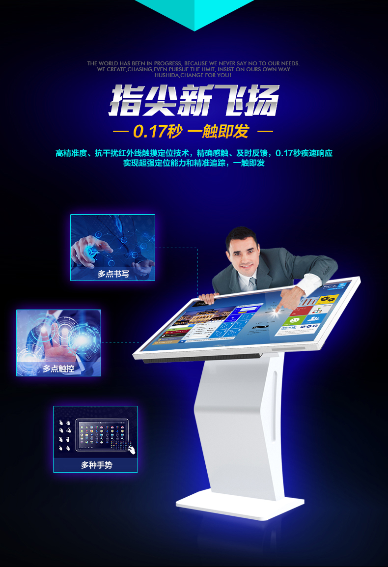 本產(chǎn)品是Aiweto(艾維圖)推出的商用臥式觸摸一體機(jī),采用國(guó)際最先進(jìn)的觸控技術(shù),結(jié)合液晶顯示,同時(shí)是高度集成計(jì)算機(jī)網(wǎng)絡(luò)技術(shù)等功能,配以性能卓越的觸摸查詢體驗(yàn)效果,快捷完成信息的查詢和展示,真正做到簡(jiǎn)單實(shí)現(xiàn)人機(jī)信息交互。